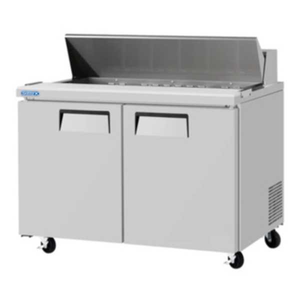 Mesa de preparación de sándwiches y ensaladas. Capacidad de 20.73 pies cúbicos. 2 puertas sólidas abatibles. 2 parrilla ajustable con recubrimiento epoxi. 16 contenedores de 1/6 con profundidad de 4″. Tabla de corte de 241 mm de profundidad con rieles laterales. Refrigerante R-290. Compresor de 2/5 HP. 115 v / 60 Hz / 1 ph, 4.1 amp. Certificaciones: cETLus, ETL-Sanitation, ENERGY STAR. Rango de temperatura 0.5°C ~ 3.3°C.