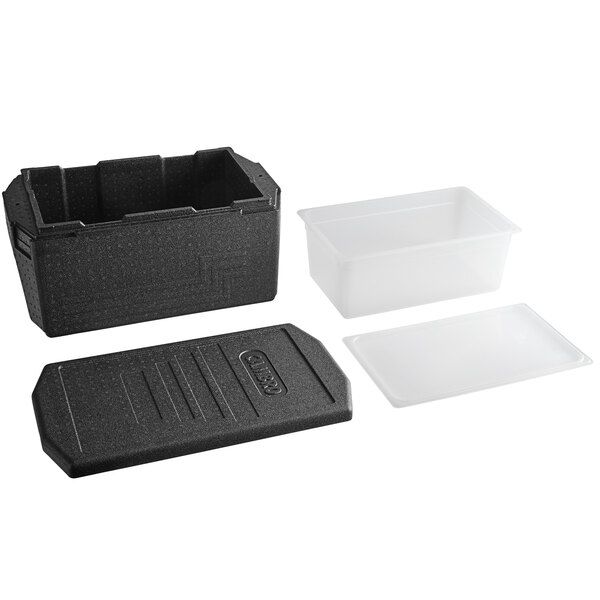 Porta Recipientes Térmicos cambro, De Tamaño Completo de 8 De Profundidad, De EPP, Con Asa Grande, De Carga Superior, Con Recipiente Translúcido y Tapa De Sellado.