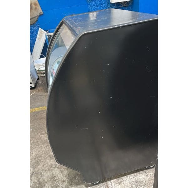 Vitrina refrigerada con doble cristal curvo frontal. Barras de led superior e inferior. 2 parrillas ajustables. Refrigerante R290. Rango de temperatura 1°C a 6°C. Capacidad 458 LTS. Medidas (frente, fondo, alto): 0.99 x 0.85 x 1.20 m.